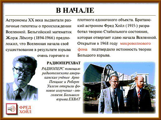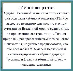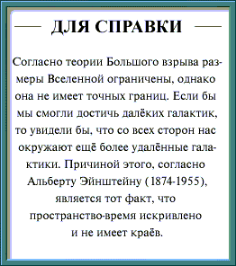 Пару лет назад мне посчастливилось приобрести электронный вариант энциклопедии по астрономии на русском языке. Подбор материала, его компоновка и оформление оставили очень благоприятное впечатление. Учитывая консерватизм академической науки, я думаю, что и сегодня официальная научная точка зрения на происхождение, строение и судьбу Вселенной мало чем отличается от сведений, приведенных в этой энциклопедии. Вот наиболее существенная информация, имеющая отношение к рассматриваемому вопросу, с моими небольшими пометками.