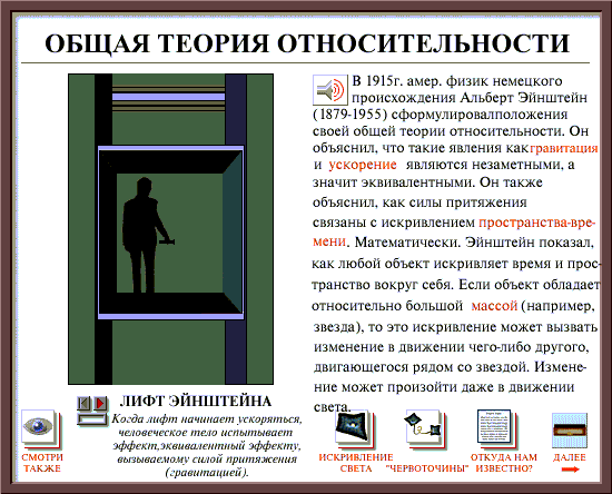 “Проникновение в тайны геометрии пространства-времени (законы его устройства) являлось научной целью Эйнштейна. Он сделал в этом направлении так много, как никто другой. Выведенные им уравнения позволяют точно определить, насколько и как именно искривлено пространство около данной массы, они также дают возможность судить, насколько искривлено пространство внутри массы. Связь массы и скорости – это теоретическая основа в его представлениях о динамике геометрии пространства. При страстном желании постичь суть геометрического устройства Вселенной, он составил ряд (систему) моделирующих ее уравнений, в решении которых приняли участие многие математики мира. Эйнштейна, как и Ньютона, удивляло то, почему при общем свойстве притяжения космических тел Вселенная не коллапсирует (не сжимается). Он, как и Ньютон, придерживался идеи стационарной Вселенной. Возможно, это предубеждение помешало ему осуществить идею геометризации физики...