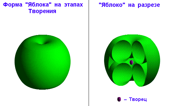 И, во-вторых, на том, что четным этапам творения соответствуют 8-миры, имеющие форму “бублика без дырки”, а нечетным, начиная с третьего этапа, - 0-миры в форме “яблока”: