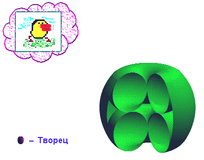 But actually we get a three-measured world inside bublik or the usual for everybody form, but infinite (or closed on itself).